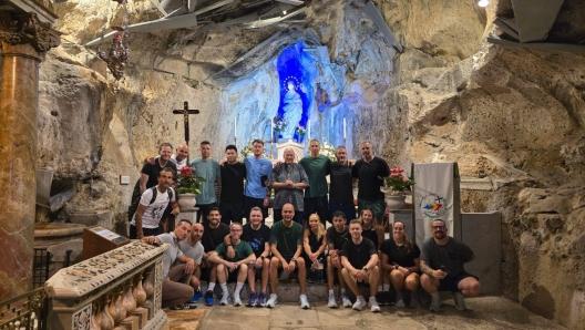 Preghiera — Questa mattina lo staff del Manchester, guidato dal tecnico spagnolo e dal preparatore atletico Federico Genovesi, e con indosso delle maglie con l’immagine di Falcone e Borsellino, ha raggiunto a piedi Monte Pellegrino per visitare il Santuario di Santa Rosalia, simbolo di fede e identità per tutta Palermo. Accolti dal reggente don Natale Fiorentino, i membri dello staff si sono raccolti in preghiera silenziosa nella Sacra Grotta, ricevendo la benedizione. Un gesto, come raccontato dal profilo Facebook del Santuario di Santa Rosalia, che ha unito fede e tradizione di una città che stasera vivrà una serata di calcio fuori dal normale.